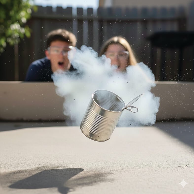 Puedes medir qué tan alto se eleva la tapa del bote después de la explosión. Cuanto mayor sea la energía liberada, mayor será la altura alcanzada. Con varias repeticiones se pueden comparar resultados y estimar la energía relativa.
